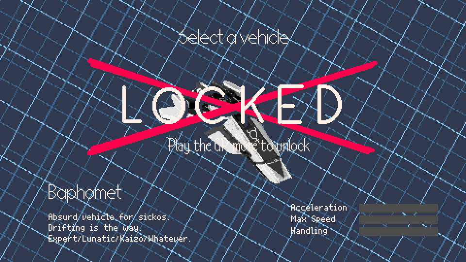 Left / Right to turn X to accelerate Z to brake Q to return to the main menu